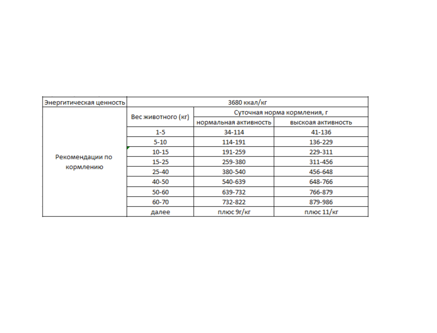 Специальные добавки (на 1 кг): глюкозамин - 550 мг/кг, хондроитин - 300 мг/кг.