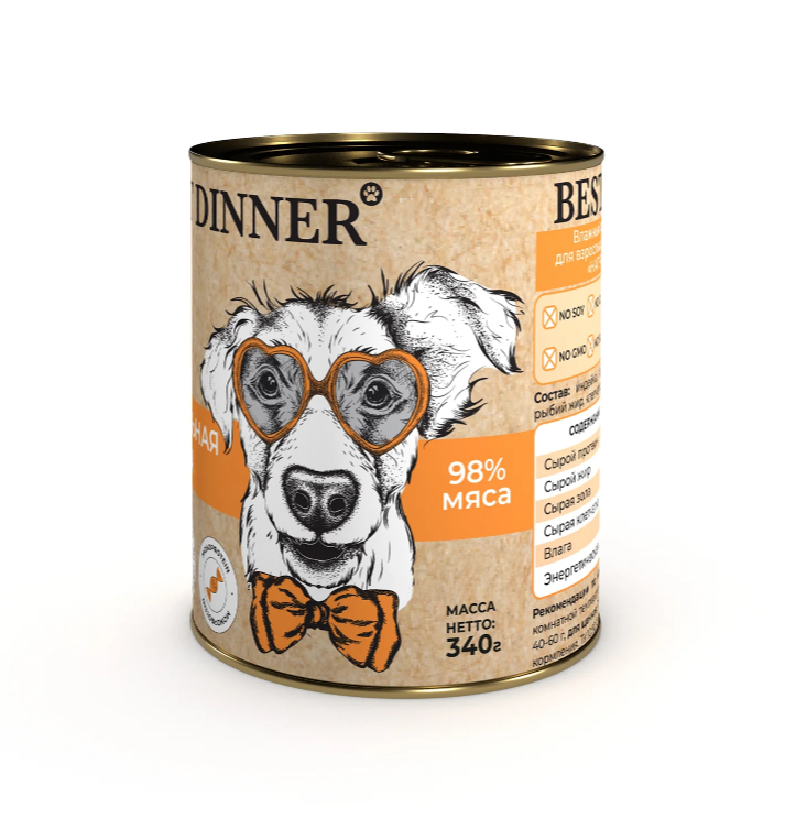 Влажный консервированный корм для собак и щенков с 6 месяцев.