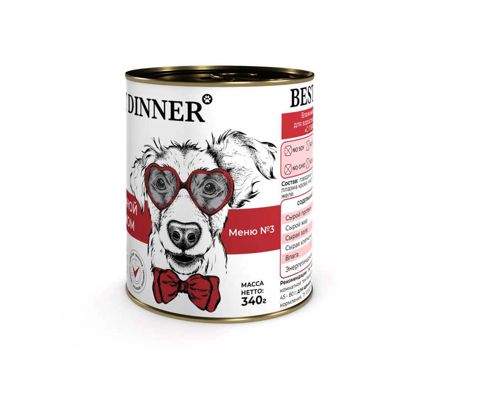 Состав: Говядина, кролик, субпродукты мясные и птичьи, плазма крови, масло растительное, рыбий жир, клетчатка, желе.