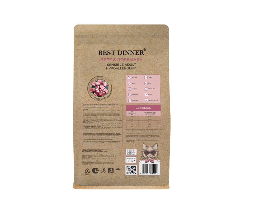 Best Dinner Holistic Hypoallergenic Adult Sterilised Cat BEEF&ROSEMARY