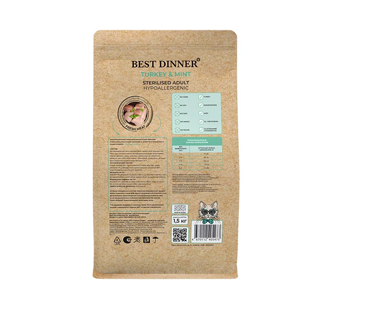 Best Dinner Holistic Hypoallergenic Adult Sterilised Cat TURKEY&MINT