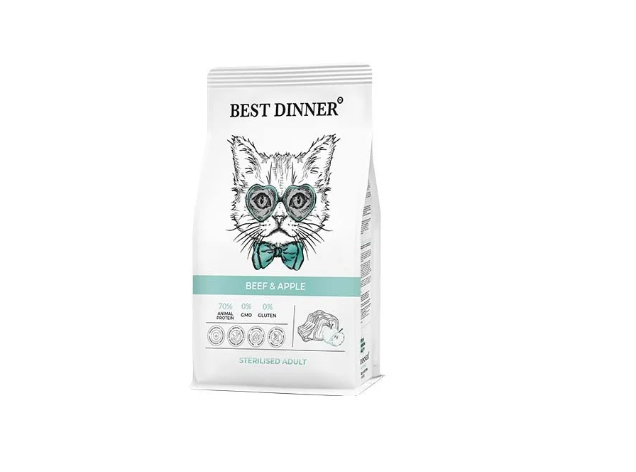 дегидрированное мясо птицы 30% (индейки 15%, курицы 15%) рис, ячмень, хлопья овсяные, дегидрированное мясо говядины 5%, жир птицы, горох, гидролизованные мясные белки (вкусоароматическая добавка), растительный белок, витаминно-минеральный комплекс, солод, яблоко сушеное, масло лосося 0,6%, Юкка Шидигера, плоды шиповника сушеные, корень цикория сушеный, DL-метионин, таурин, глюкозамин, L-карнитин, розмарин, хондроитин.