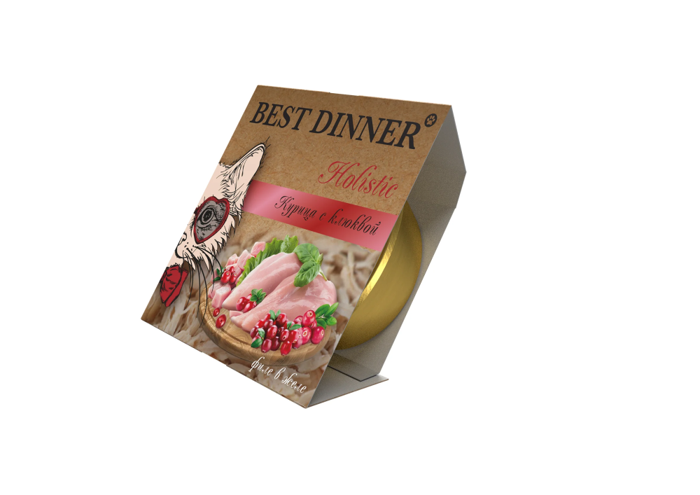 Best Dinner Holistic Влажный консервированный полноценный корм для взрослых и стерилизованных кошек. Мясные волокна в желе "Курица с клюквой"