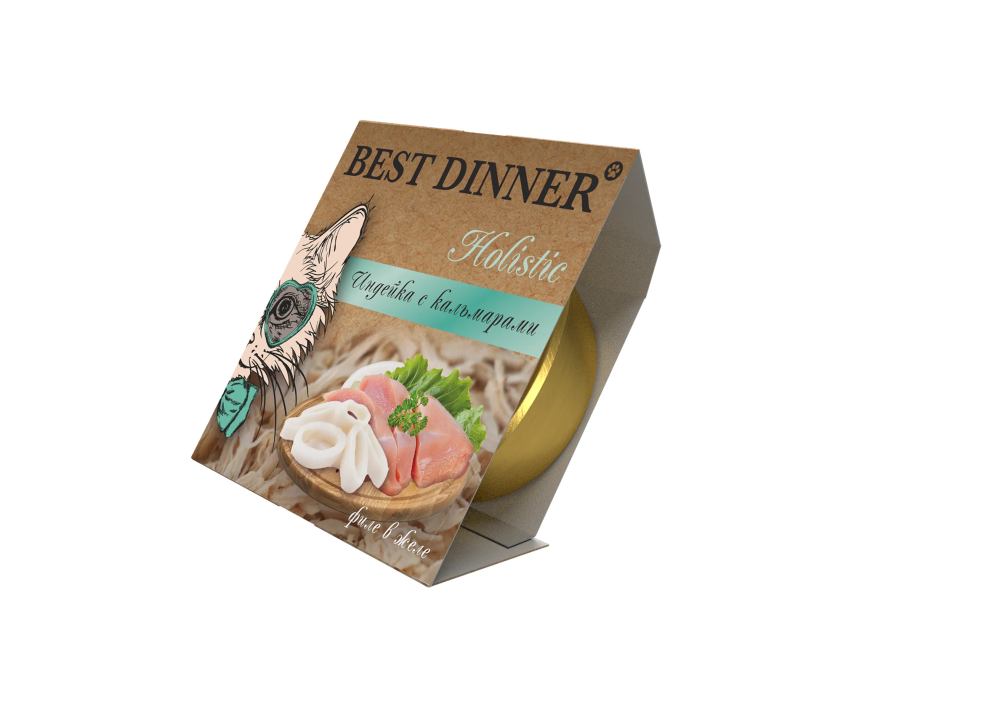 Best Dinner Holistic Влажный консервированный полноценный корм для взрослых и стерилизованных кошек. Мясные волокна в желе "Индейка с кальмарами"