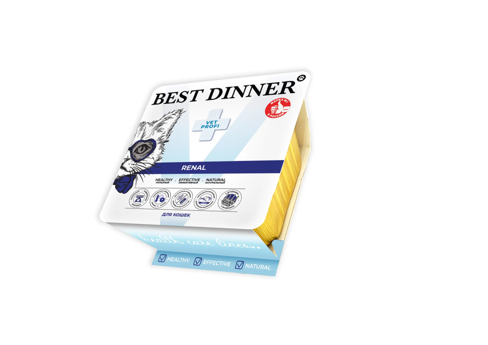 Влажный диетический полнорационный консервированный корм для кошек для поддержания функции почек при хронической почечной недостаточности. Применяется в период временных нарушений, рецидивов и при хроническом течении заболевания почек.