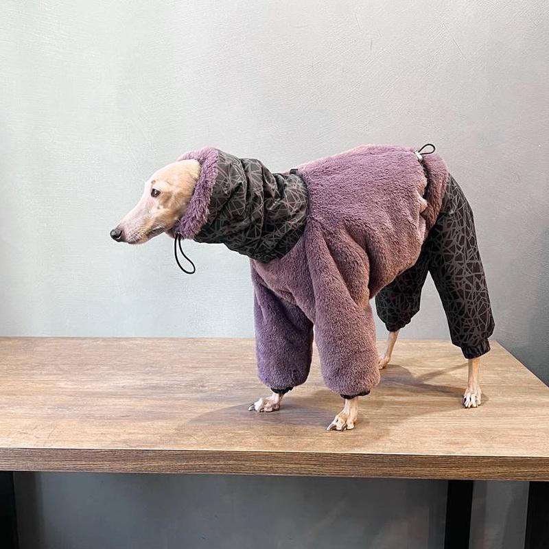 Абсолютная роскошь и абсолютный комфорт - теплая шуба-комбинезон из эко меха под норку и светоотражающей плащевки создан специально для для левреток и уиппетов.