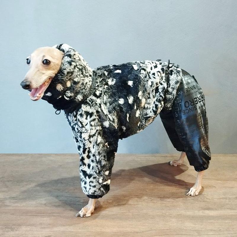 Абсолютная роскошь и абсолютный комфорт - теплая шуба-комбинезон из эко меха под норку и лаковой плащевки создан специально для для левреток и уиппетов.