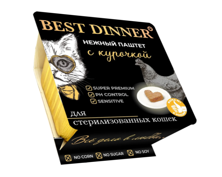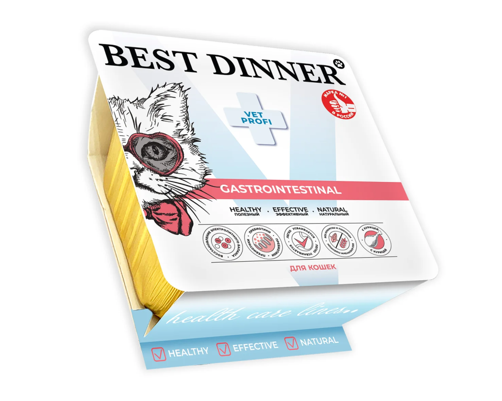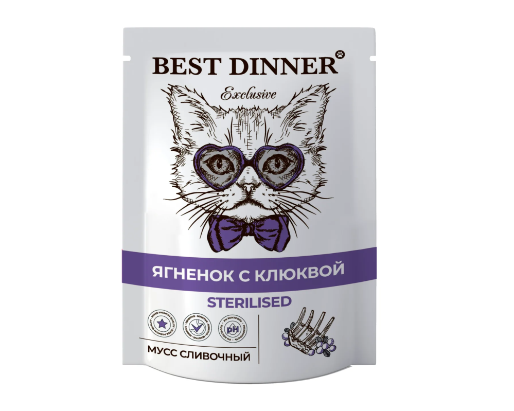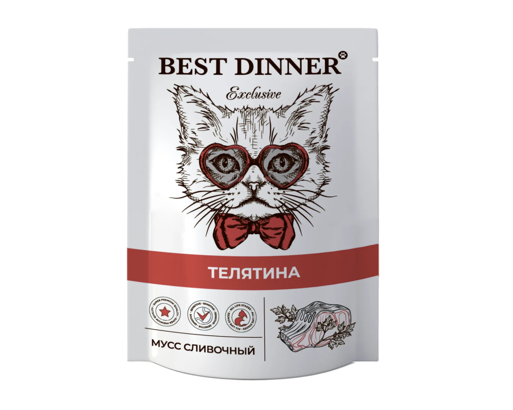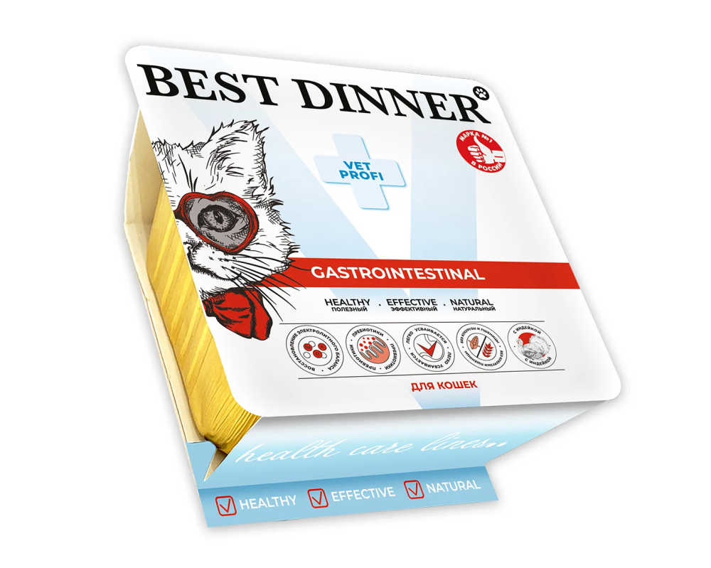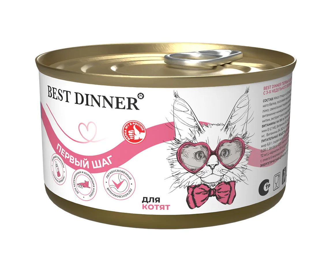 Белки ≥ 55% Жиры ≥ 12% Клетчатка ≤ 7% Зольность ≤ 10% Влага ≤ 90% Кальций ≥ 1% Фосфор ≥ 0.8% Водорастворимые хлориды ≥ 0.3% Таурин ≥ 0.2%