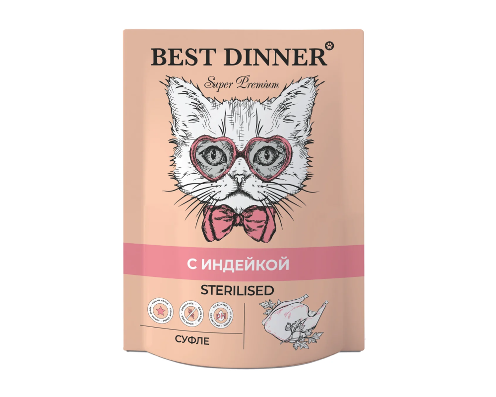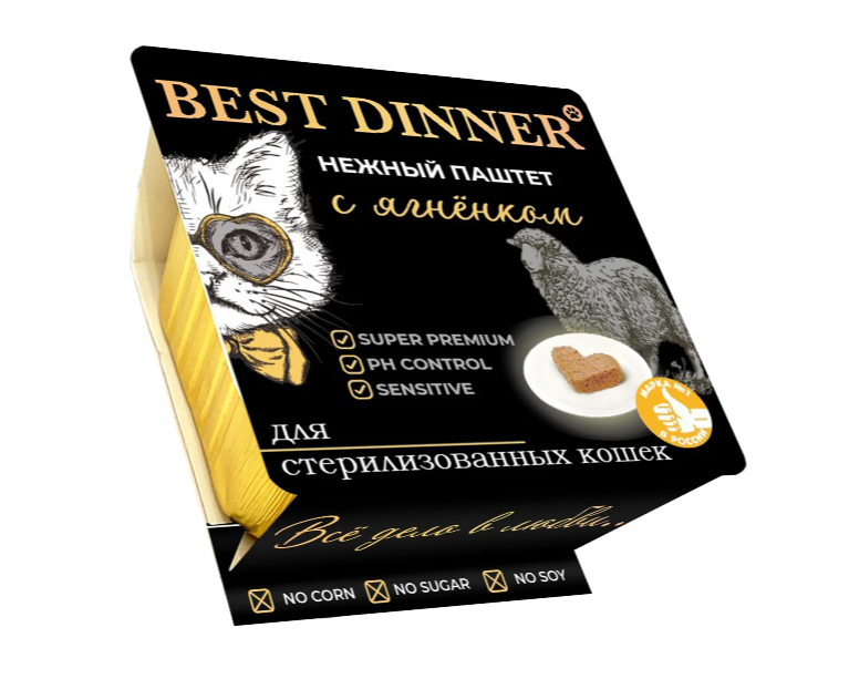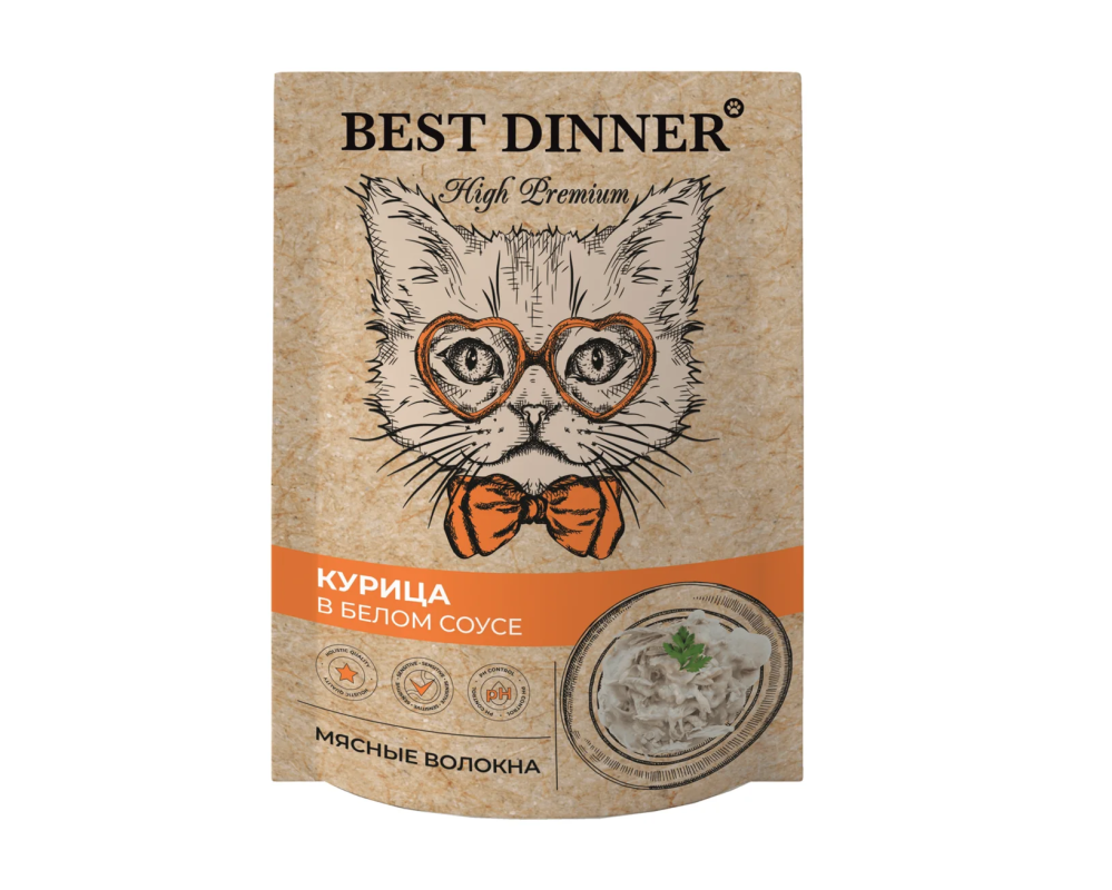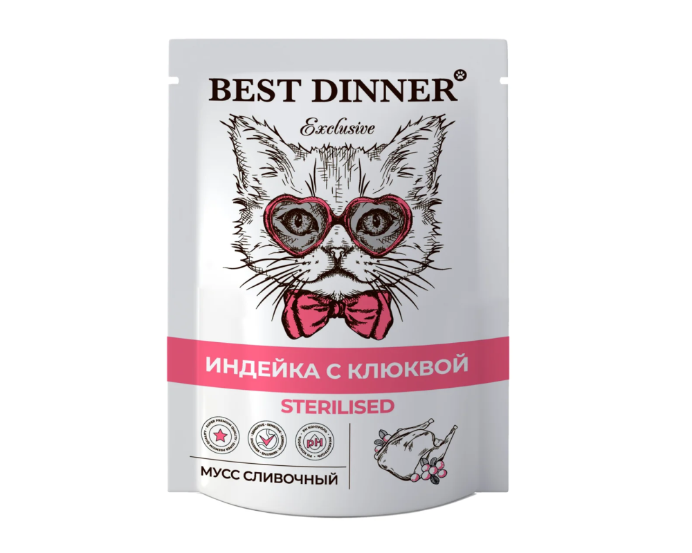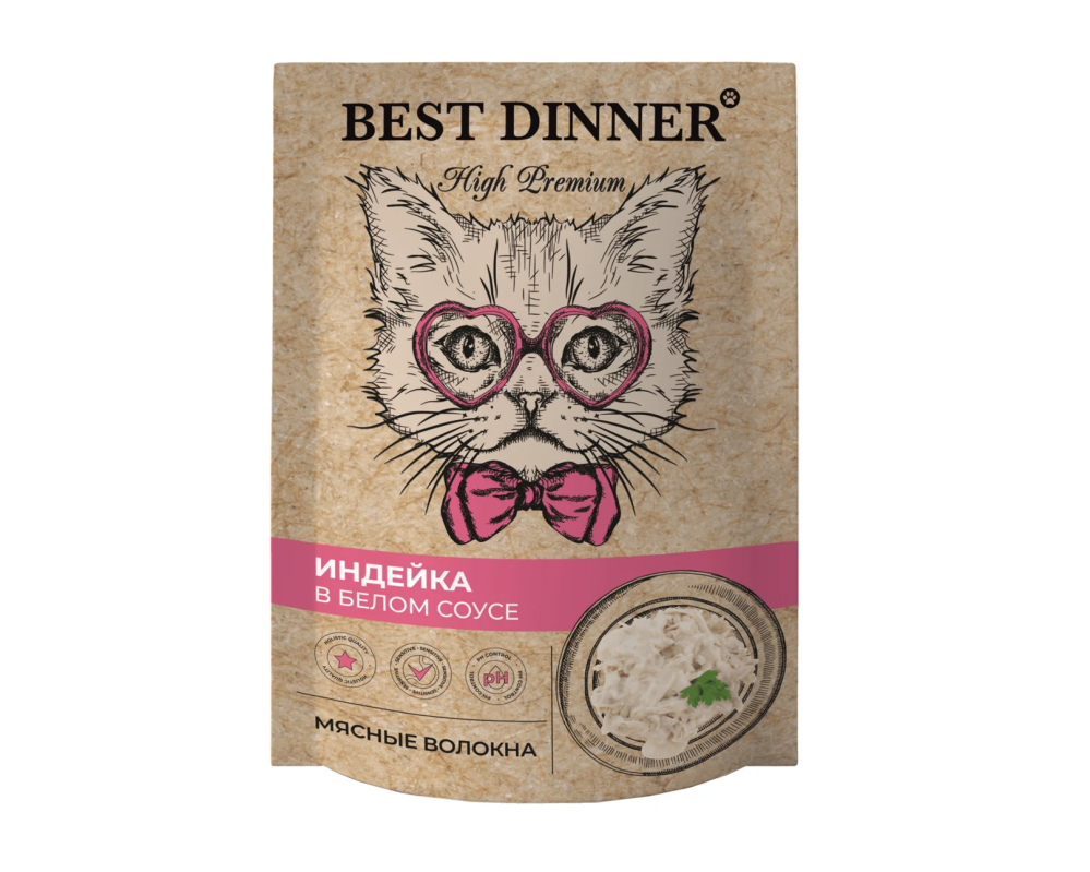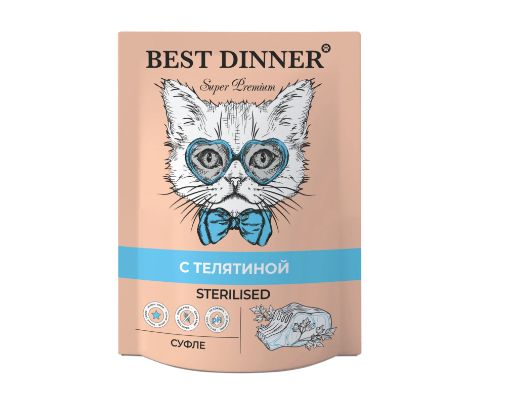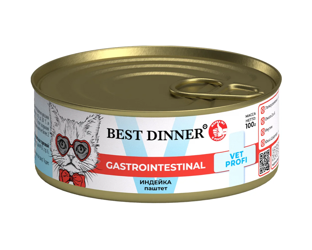 Белки ≥ 55% Жиры ≥ 12% Клетчатка ≤ 7% Зольность ≤ 10% Влага ≤ 90% Кальций ≥ 1% Фосфор ≥ 0.8% Водорастворимые хлориды ≥ 0.3% Таурин ≥ 0.2%