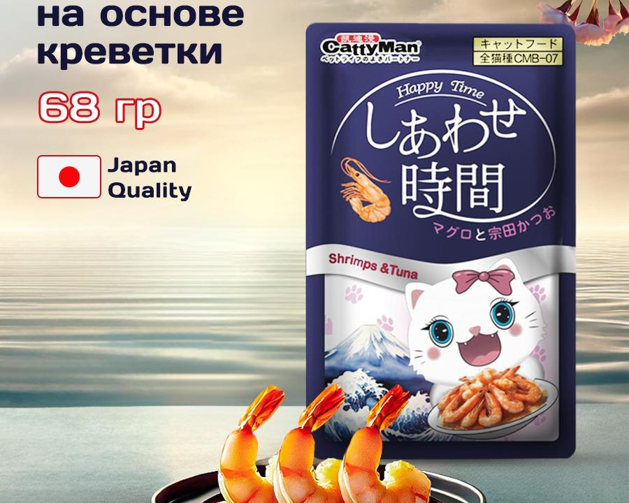 Функциональный влажный корм «Момент счастья» на основе креветок и японского тунца бонито для улучшения пищеварения кошек, 70 г