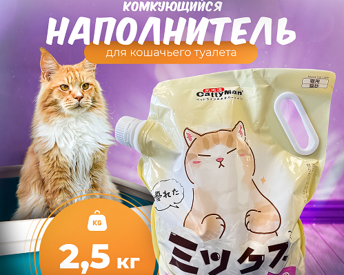 Одной упаковки, весом 2,5 кг, в среднем хватает на 50 дней для кошки среднего размера.