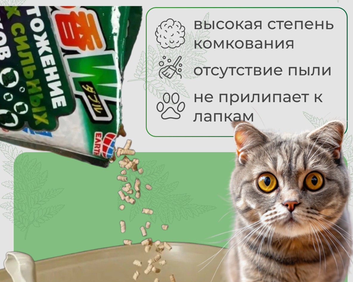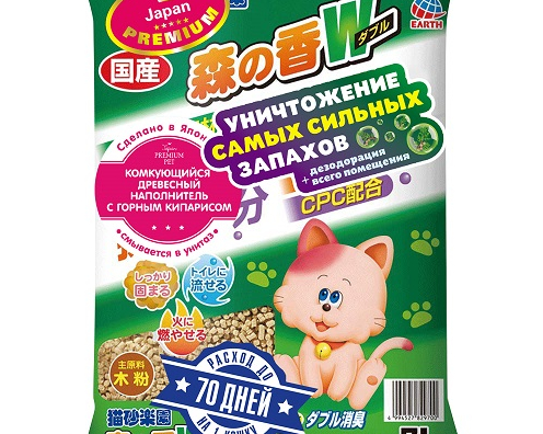 Натуральные эфирные масла горного кипариса благотворно влияют на нервную систему питомцев и их владельцев, ароматизируют помещение. Поверхность древесных гранул имеет особую перфорированную структуру, которая обеспечивает высокую степень комкования и препятствует растаскиванию наполнителя на лапах и шерсти. Катехин японского чая + эфирные масла обволакивают поверхность фекалии и запирают неприятный запах внутри.