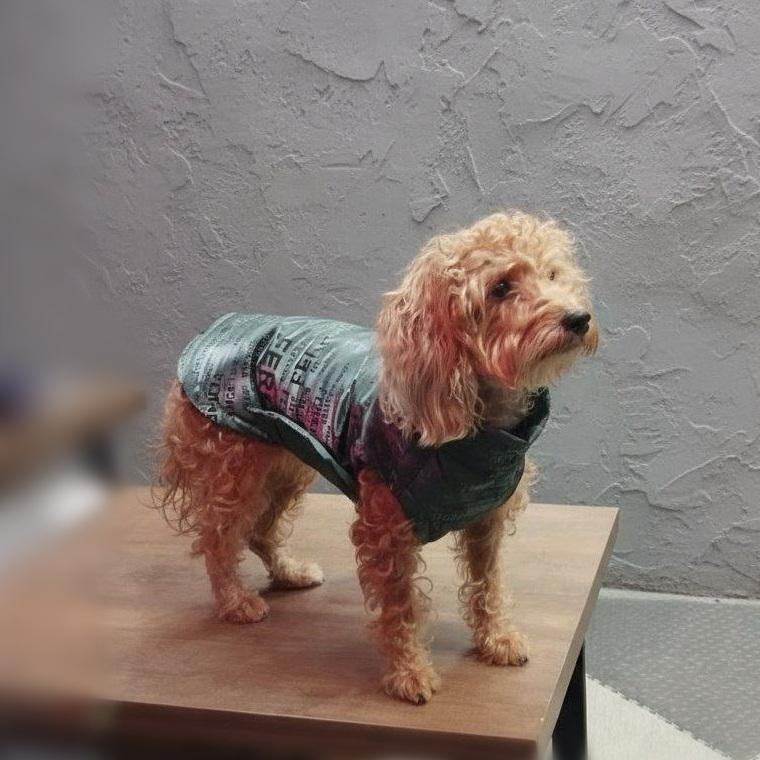 Попона-пуховик "Зеленая газета" для собак средних пород